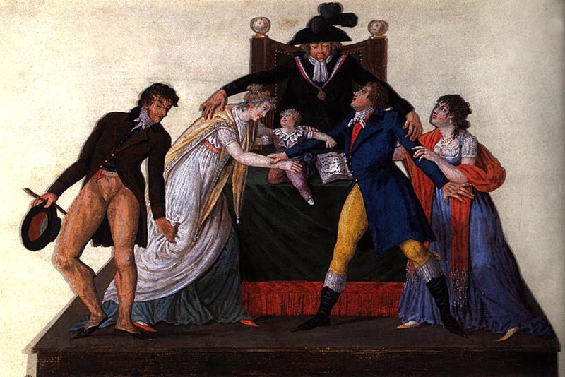 - Dobová alegorie: zavedení manželských rozvodů ve Francii 20. 9. 1792